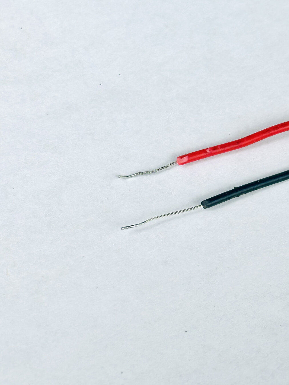 On the LED jumper, twist the strands at the end of the wires to make them easier to insert.
