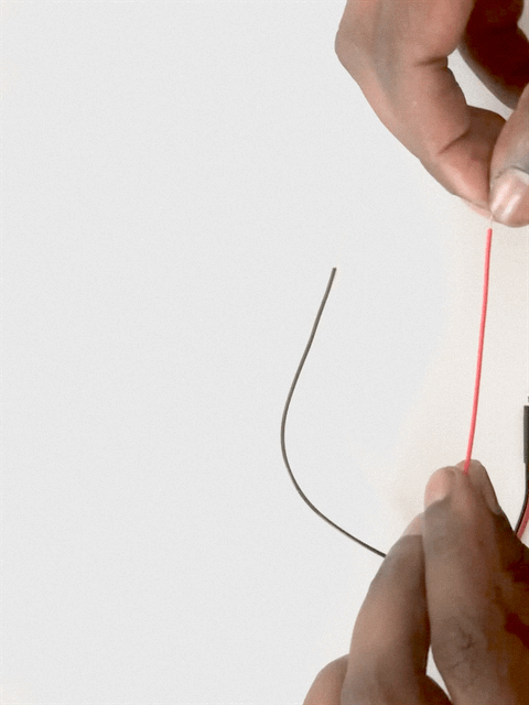 Do the same for the black wire: Slide the black wire into the copper loop on the motor, on the side with the black dot and fold over.