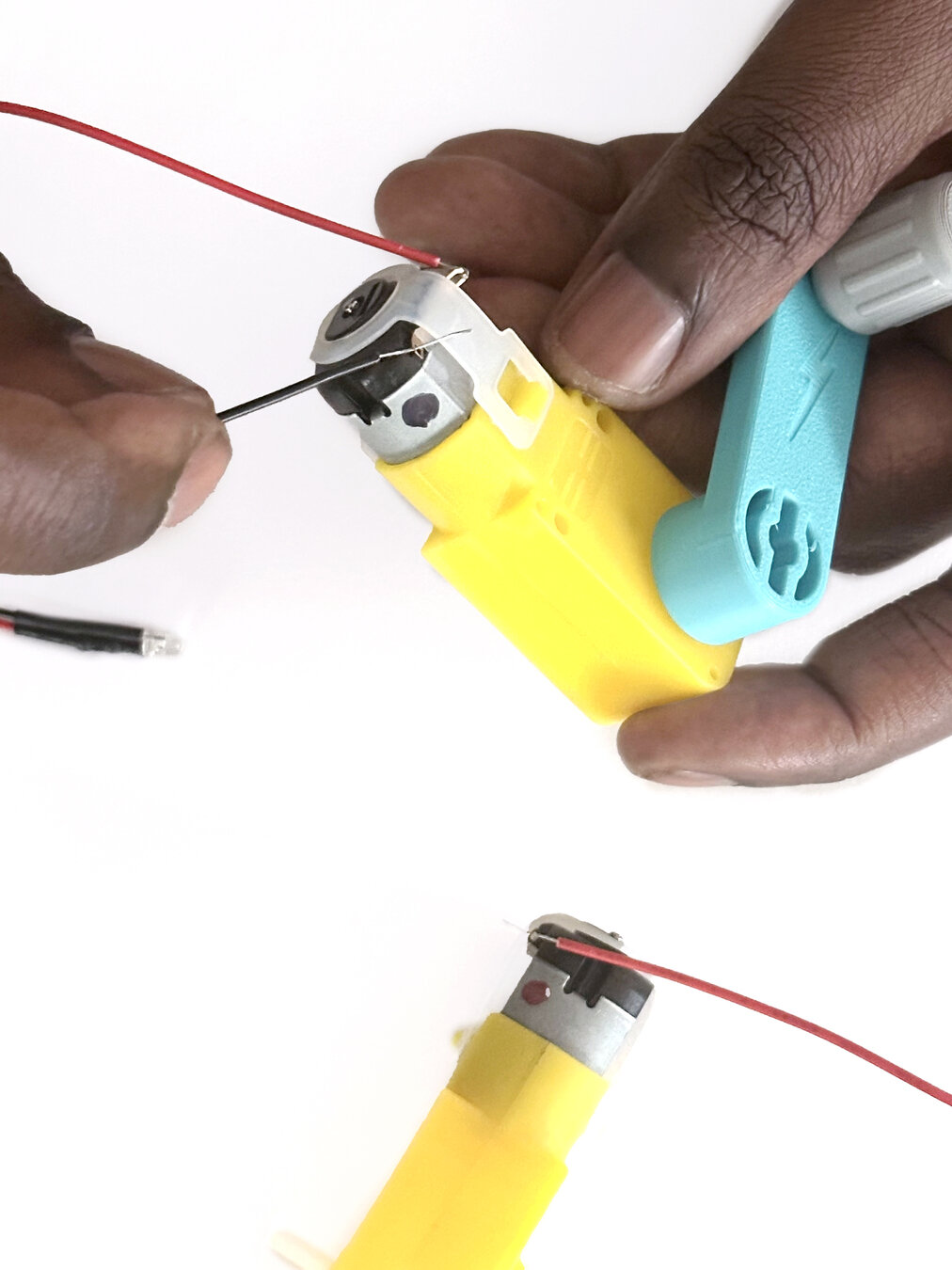 4. Twist the exposed part of the wire to secure it onto the motor.